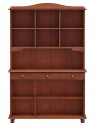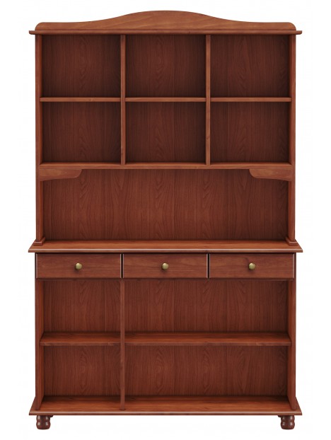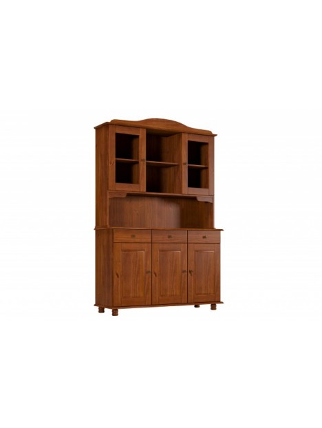 Resumen | Aparador en madera maciza, 2 puertas superiores con vidrios + 3 cajones + 3 puertas inferiores con estantes. |