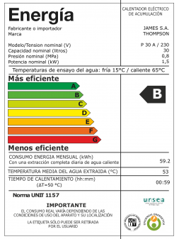 Termotanque James Cilíndrico, Tanque de Acero, Aislación de Poliuretano Inyectado