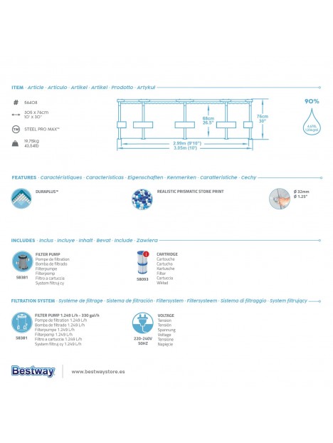 Contenido: 1 piscina, 1 bomba de filtrado (compatible con cartucho de filtro tipo I)