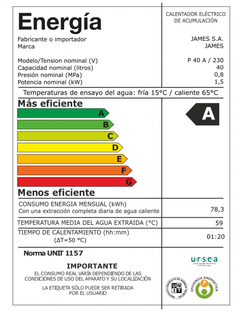 Termotanque James Cilíndrico, Tanque de Acero, Aislación de Poliuretano Inyectado